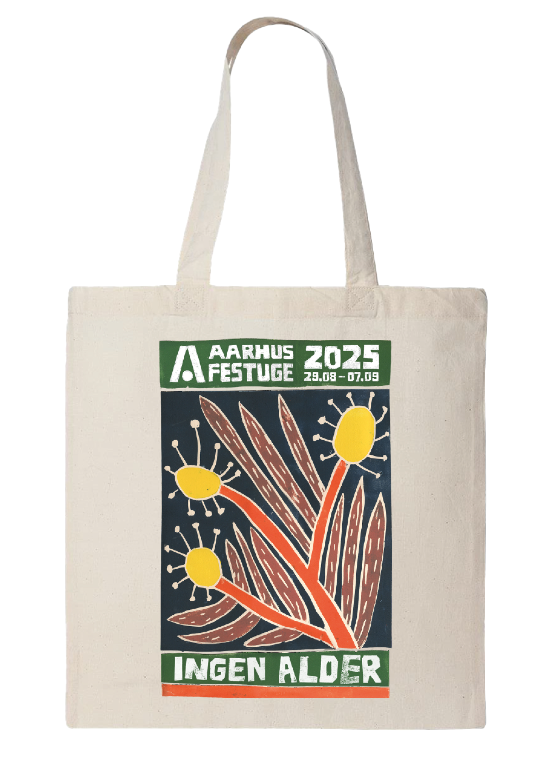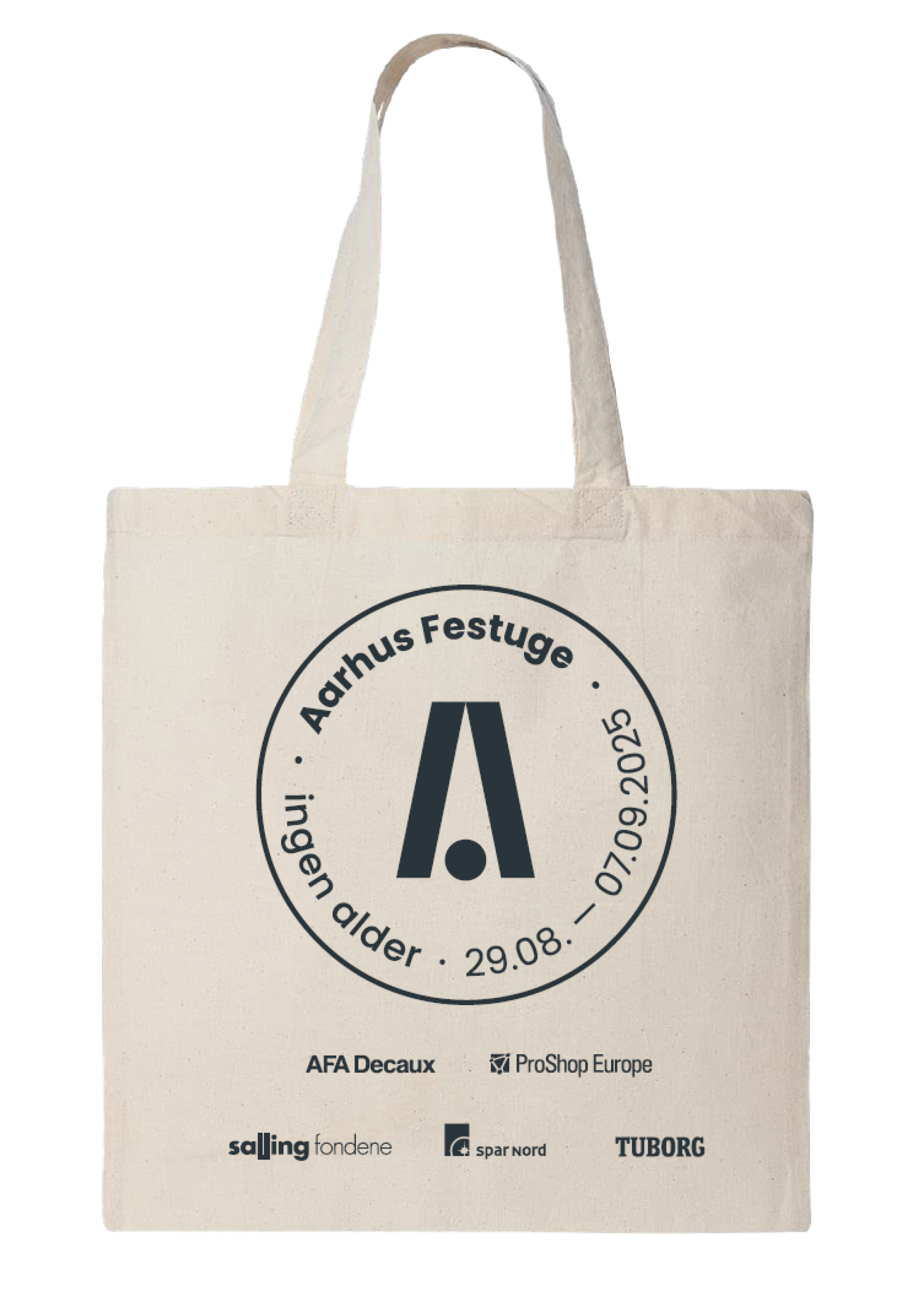 En mulepose i høj kvalitet med motiv skabt af kunstneren Peter Larsen i anledning af Festugens 60-års jubilæum og er inspireret af temaet “Ingen alder”.